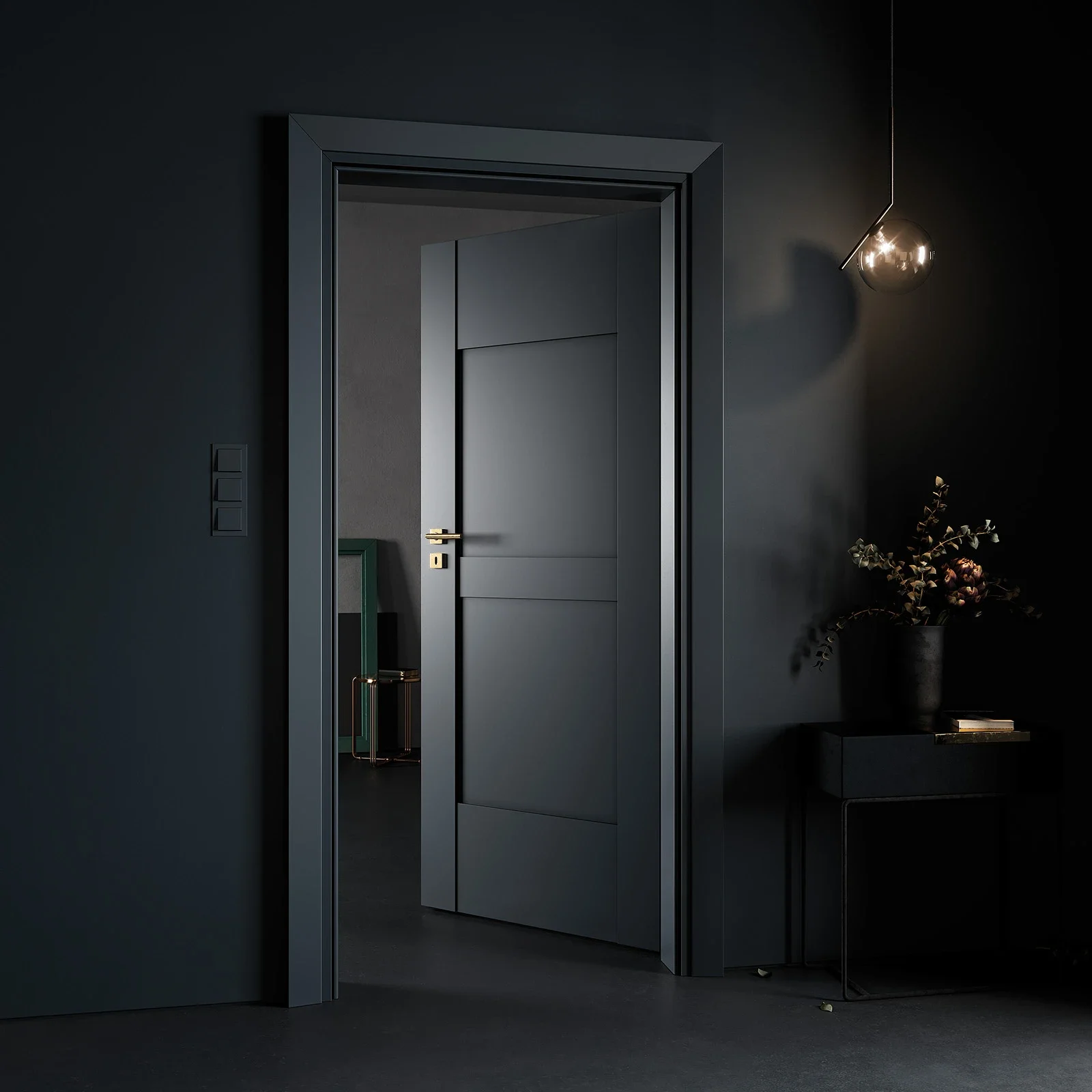 • Lygiabriaunė durų varčia, standartinė stumdoma sistema (LOFT sieninė ir į sieną įstumiama sistema, netaikoma PP spalvų grupei)