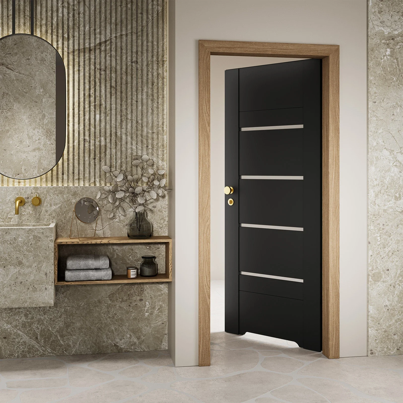 • Lygiabriaunė durų varčia, standartinė stumdoma ant sienos, LOFT arba į sieną įstumiama (netaikoma PP spalvų grupei)