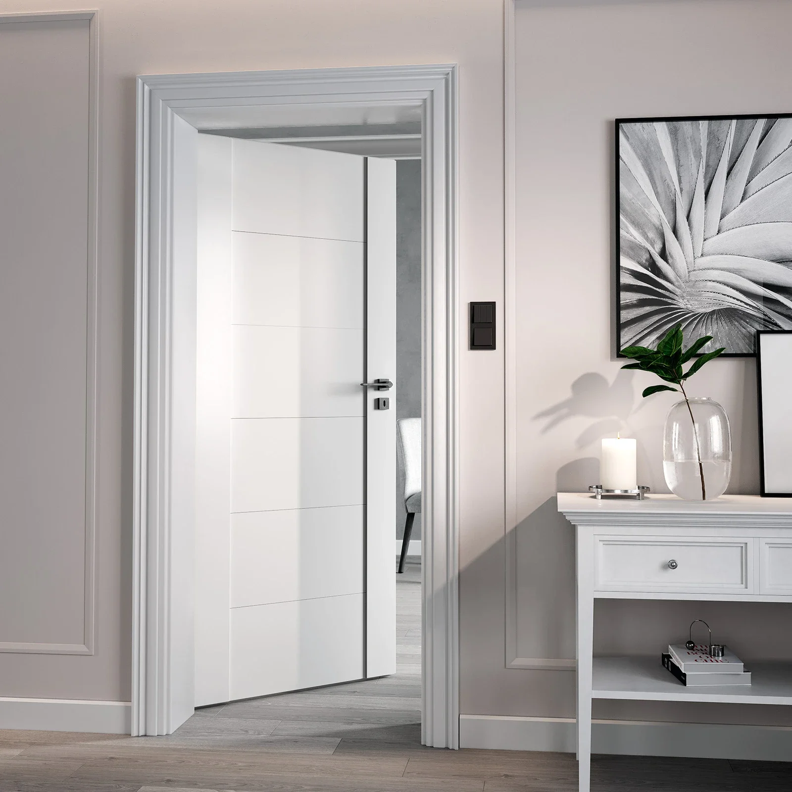 Lygiabriaunė durų varčia, standartinė stumdoma ant sienos tvirtinama sistema, LOFT sieninė bei į sieną įstumiama sistema