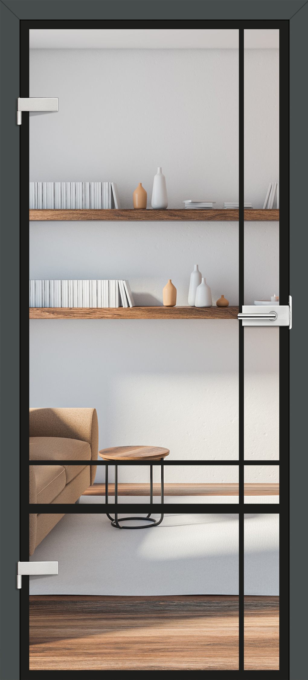 8 mm GRAF 36 grūdintas stiklas su juoda aplikacija, stakta su JUODU ST CP laminatu