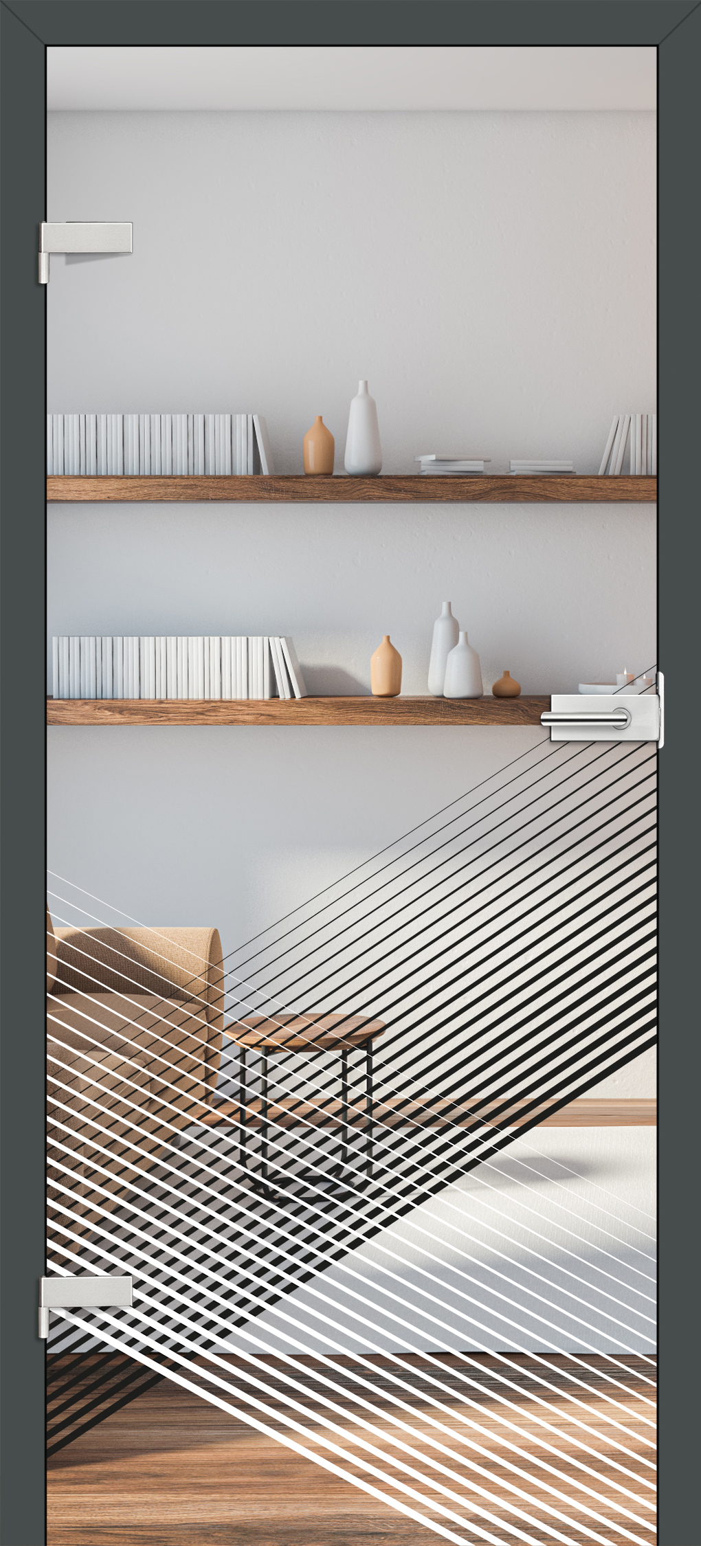 8 mm GRAF 36 grūdintas stiklas su juoda aplikacija, stakta su JUODU ST CP laminatu