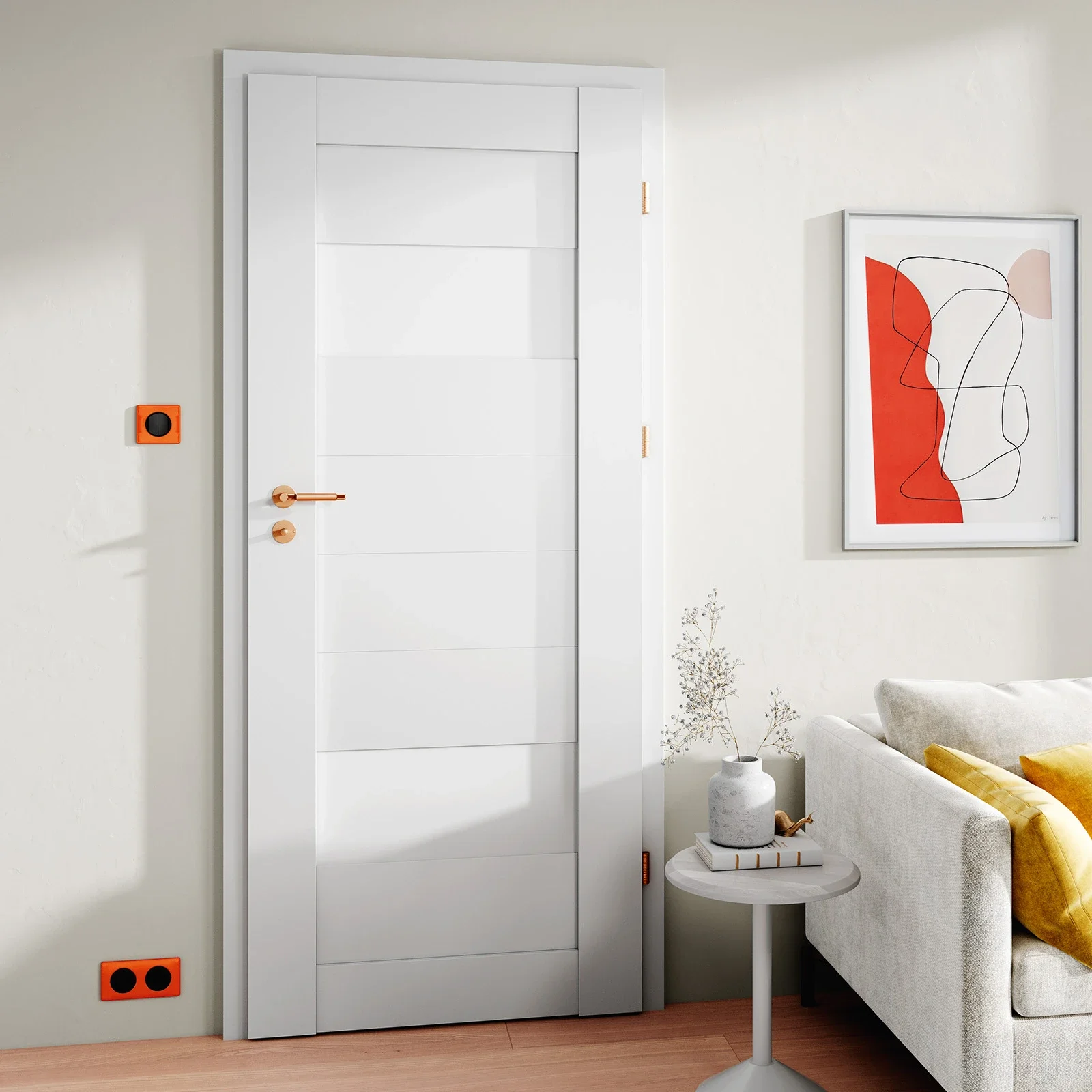 • Lygiabriaunė durų varčia, standartinė stumdoma sistema, tvirtinama ant sienos, LOFT sieninė ir paslepiama sienoje